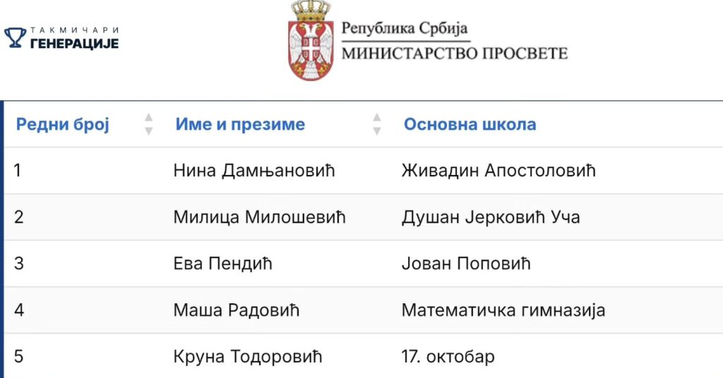 Нина Дамњановић међу најбољим ученицима Србије – „Такмичар генерације 2025“